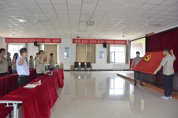 組織召開黨史學習教育活動動員大會,黨委書記上專題黨課。5月20日下午,夏甸金礦組織召開黨史教育活動動員大會。會上黨委書記高金成爲全體黨員上了一堂名爲《中國共産黨百年風華》的專題黨課并對如何開展好學習教育活動發表重要講話。會議号召要把黨史學習教育與企業發展結合起來,努力把黨史學習教育成果轉化爲幹事創業的強大動力,轉化爲推動夏甸金礦“十四五”開好局、起好步的實際能力,以優異成績向建黨的100周年獻禮。