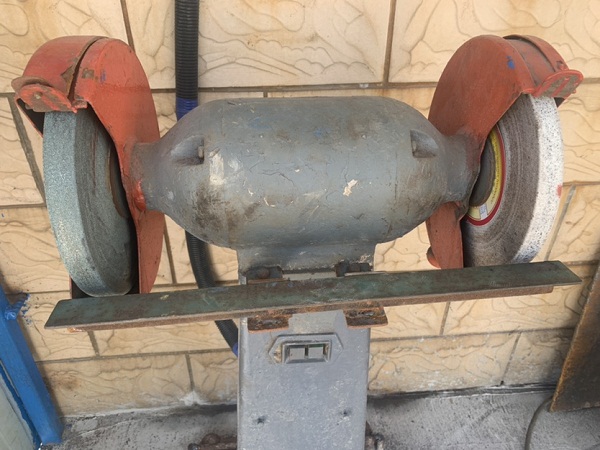 砂輪機磨刀托架得巧用。在機修車間,車刀在磨削的過程中,因砂輪摩擦力和慣性,易使車刀向砂輪旋轉方向下滑,一旦握持不住刀具,易發生傷害肢體的事件。針對這一情況,機動設備部對砂輪機進行了改造,取長度合适的三角鐵及鐵闆制作托架,固定于砂輪機砂輪前端,能夠有效避免在磨削過程中因砂輪摩擦力及握持力度過大造成的傷害事件,提高作用過程中的安全性。