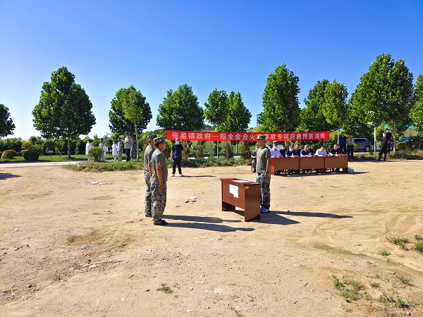 爲使演練更加形象、逼真,招金金合相關部門提前準備好木材堆、滅火器、警戒線、對講機、現場标識等演習用品,消防救援車、灑水車等演習車輛。下午3時30分,張星鎮政府、市消防大隊、招金礦業、鎮周邊企業相關參演和觀摩人員全部就位,随着總指揮一聲令下,演練正式拉開了序幕,現場人員巡查發現廢舊物資起火,立即上報火災險情,随着火情蔓延,火焰沖天、濃煙湧出,招金金合迅速啓動《火災事故專項應急預案》,第一時間成立現場指揮部并上報張星鎮政府,各應急救援小組分工明确,迅速就位,按照預案應急流程,采取拉起警戒帶實施警戒,排除事故區域無關人員,救援隊員控制火情等措施,全力進行應急處置,随後接到通知的招遠消防大隊快速出擊,到達火災現場,利用高壓水槍将着火點有效控制直至完全撲滅,與此同時,張星鎮護林防火大隊按照報告方位,進入周邊區域全面搜索并撲滅飄散零星火星。整個演練過程井然有序、安全規範,做到了遇險不慌、應對自如、自救互救。