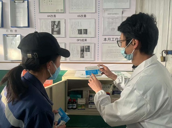 “别看這小小藥箱,卻爲我們的健康提供了大保障,疫情期間,員工有個發燒感冒的,有時候真是一‘藥’難求,平時工作期間難免會有個身體疼痛發炎,到那會兒小藥箱就派上大用場了。小藥箱裏藥品一應俱全,公司也會按照藥品使用期限定期更換,還增補了很多職工普遍反饋需要的藥品。”選礦車間磨浮車間班長旦吉才旦介紹說。