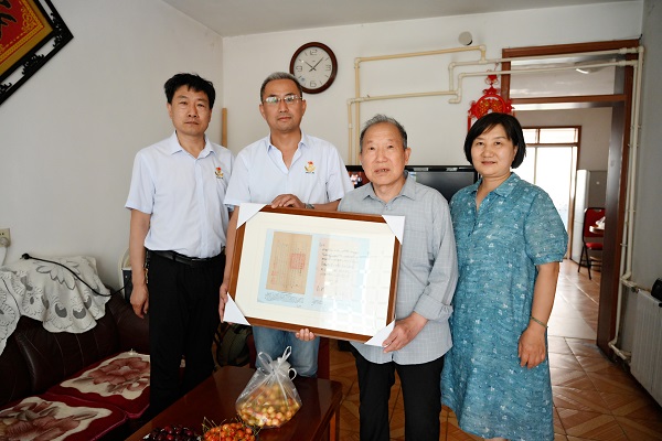 爲緬懷先烈,傳承紅色記憶,近日,在中國共産黨成立第102周年到來之際,夏甸金礦采礦車間黨支部金潤心志願者向招遠第一位黨員、首任縣長王德安烈士後人捐贈紅色文物。