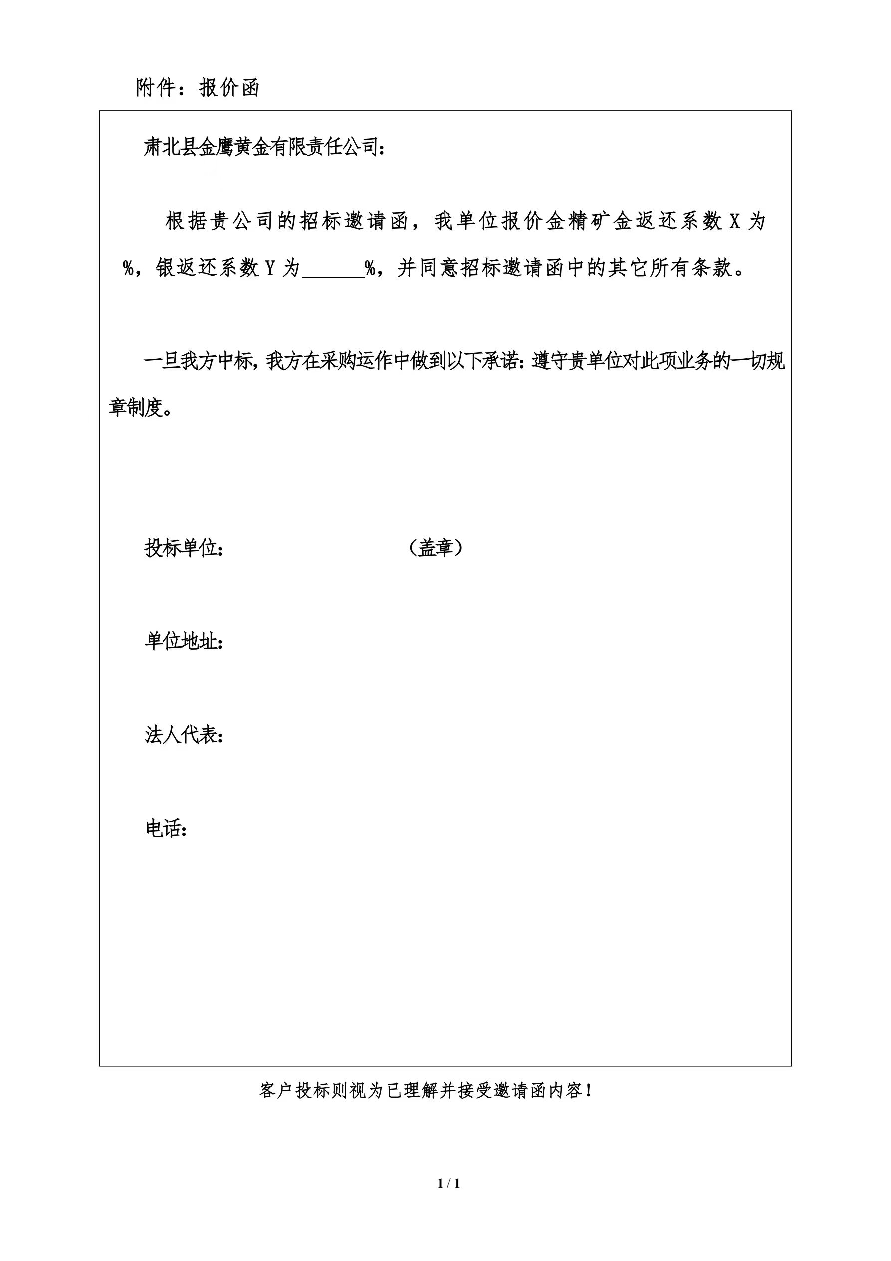 3、招标結束之後中标人必須在發貨前預付貨款進行拉運,具體發貨時間以肅北縣金鷹黃金有限責任公司通知爲準。中标人需在中标後 3 日内進行合同簽訂(簽署合同的同時,投标保證金轉爲同等金額的履約保證金),并根據合同約定事項,進行款項預付及貨物裝運,如中标人在合同規定時間内預付貨款不能及時到位,我公司将取消其本次中标資格并扣除全額投标保證金;若中标人未聽從我公司安排在規定時間内裝完貨物,我公司将有權終止合同并扣除中标人全額履約保證金。爲保障中标人的權益,我公司承諾,在此次招标産品數量内,我公司将不會銷售給除中标人以外的任何客戶。如本次招标有違反上述約定的行爲,請貴公司撥打舉報電話進行投訴,舉報電話:0535-8262976。